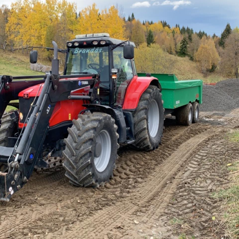 Traktorentreprenør Terje Brandås transporterer fyllmasser som jord, sand, singel, grus, pukk og andre fyllmasser. Fyllmasser kan for eksempel brukes for å bygge